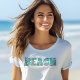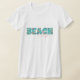 This stylish t-shirt features whimsical 1960s or 1970s retro-style text in pastel shades of aqua blue, pink, and yellow. The colourful "Beach Life" text includes images of cute palm trees, hibiscus flowers, seashells, and more. This fun tee has a feminine boho vibe and is perfect for a tropical summer family vacation, spring break, casual wear, or use as a women’s swimsuit cover.