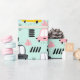 Funny little retro car design.Teals and greys.
