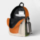 This adorable backpack features a mischievous cat, wearing sunglasses and peeking out of a terracotta planter, which also happens to be the zippered front pocket design. Floral elements, including daisies, and star accents in retro shades of pink, olive green, orange, coral, and white complement the main motifs perfectly. The side and top contain a matching colour block design. Add a monogram initial or name, if desired. This cute, colourful school backpack is perfect for the girl who loves cats and flowers! *Original artwork by Tracey Khalei / Orabella Prints.
