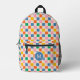 This fun, stylish custom backpack features a chequerboard pattern in retro / vintage shades of bright tangerine orange, blue, kelly green, yellow, pink, and cream. A monogram initial text template is included - use it to personalise your backpack or remove it and the circle, if you'd prefer no monogram. This cute, colourful backpack is perfect for back to school ! *Original artwork by Tracey Khalei / Orabella Prints.