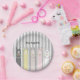 The product design features an illustration of retro colourful decorated llamas. This adorable animal design with white stripes makes cute modern and unique paper plates with personalised text and background colour.