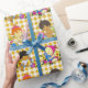 Cute Retro Colourful Yellow Plaid Baby Shower Wrapping Paper