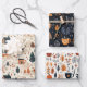 Cute retro cosy elegant design features 3 different papers: 1. A pattern of rustic Cabin , fall autumn pine trees and hot chocolate on ivory background, 2. A pattern of fall autumn trees, hot chocolate and orange foliage on black background, and 3. A pattern of fall autumn trees, hot chocolate and orange foliage on a white background. This elegant Feminine fall autumn Pattern and festive gift wrap set is the perfect way to send love to your friends and family.