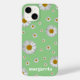 Cute Retro Daisy Flower with Name Sage Green Case-Mate iPhone Case