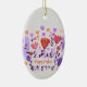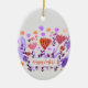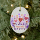 Cute retro doodle watercolor flowers with violet and coral. Retro floral illustration Easter Ceramic Ornament