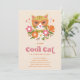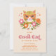 Cute Retro Floral Cool Cat Girls Birthday Party Invitation