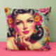 Cute Retro Floral Pin-up Portrait Cushion