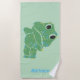 Create an un-froggettable gift when you add a name to this beach towel. It features a cute retro style frog illustration. The green cartoon frog has blue and yellow speckles. Your name or other text appears in bright blue lettering.