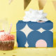 This stylish wrapping paper features a cute retro geometric floral pattern in blue and pink.