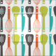 Cute Retro Green Orange Kitchen Utensils Pattern Fabric