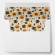This design presents a cute and whimsical Halloween pattern filled with a delightful assortment of classic spooky icons. The background is a light cream colour, providing a soft contrast to the bold designs. The pattern includes playful jack-o'-lanterns with different expressions, black cats with bright yellow eyes, smiling skulls, and friendly bats with orange wings. Scattered throughout are spiders, crescent moons, stars, mushrooms, and magical symbols, all adding to the enchanting Halloween atmosphere. The colour palette features striking blacks, oranges, and yellows, creating a lively and festive design perfect for Halloween decorations, clothing, or party themes. The overall feel is fun and charming, ideal for celebrating the spooky season with a touch of sweetness.