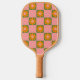 Cute Retro Hippie Flower Chequerboard Pink Green Pickleball Paddle