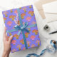 Cute Retro Hippie Mushroom Pattern in Purple Wrapping Paper