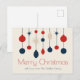 Cute Retro Merry Christmas Red Blue Ornaments Holiday Postcard