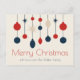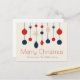 Cute retro Merry Christmas postcard with vintage 70 style ornaments in red, blue, and ivory above your family name. Beautiful nostalgic non photo holiday postcards.
