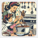 Cute Retro Mum and Daughter Baking Together Square Sticker