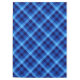 A 60” x 84” tablecloth featuring a cool plaid pattern design in pretty ocean blue.