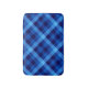 A small sized bath mat featuring a cool plaid pattern design in pretty ocean blue.