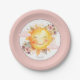 Cute Retro Pink Boho Flowers Sunshine Baby Shower Paper Plate