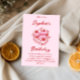 Celebrate in sweet style with this adorable pink heart-cake themed birthday invitation! Featuring a charming retro illustration of a layered heart-shaped cake with candles, soft pink background, and elegant red script typography, this design is perfect for a fun and feminine birthday celebration.