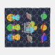The original design on this ultra-soft fleece blanket is out of this world! On a night sky background of midnight blue & star formations are a mix of pieced felt looking ringed planets, flying saucers, a shopping cart full of retro-style toy robots, & a funny robot variation of the classic trio of "See no Evil, Hear No Evil, Do No Evil" & all in bright neon like colours.