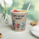 Add a vintage sci-fi touch to any party with these custom paper cups. Featuring illustrations of cute retro style robots in shades of red and blue against a tan background, these are ready to be personalised with your custom message, making them perfect for birthday parties for boys and robot fans of all ages.
