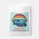 If you modify the size or transfer the design, adjust the image accordingly. This delightful illustration on this party favor bag showcases a retro, vibrant sun adorned with red hearts and a sleek car, accompanied by the phrase "You make my heart race." The "Happy Valentine's" message can be customized, and you will add your child's name too. It's a playful favor option for boys to share with classmates, teachers, friends, and family. Matching products in my store feature this same charming design.