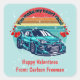 If you modify the size or transfer the design, adjust the image accordingly. This charming illustration features a retro, colorful sun decorated with red hearts and a stylish car, paired with the phrase "You make my heart race." You can customize the "Happy Valentine's" message and include your child's name. This sticker is a fun choice for boys to share with classmates, teachers, friends, and family. Additional products in my store feature the same design.
