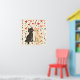 Two cute cats, one dark and one light-colored sit happily beside each other surrounded by hearts and flowers in a retro design.