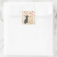 Two cute cats, one dark and one light-colored sit happily beside each other surrounded by hearts and flowers in a retro design.