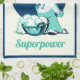 Cute little chef in vintage 1950s / 1960s style in blue tones for retro mid century aesthetic with text "Baking is mu superpower", perfect gift for the lover of baking, cooking