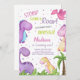 Make her birthday dino-mite with this adorable pink and purple dinosaur invitation! Featuring sweet dinosaur illustrations, pastel colours, and playful fonts, it’s perfect for a fun and girly prehistoric party. Fully customisable with your child’s name, age, and party details.