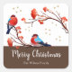 Cute Robin Birds On Red Berry Branch Christmas Square Sticker