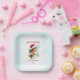Brighten up the holiday season with these cute personalised Christmas Square Paper Plates featuring a sweet robin bird in a Santa hat. Easily personalise them with your own text. - Kate Eden Art