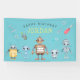 Celebrate your little one's birthday with this adorable robot themed birthday party banner featuring cute little robots, and a few "nuts & bolts" on a cheerful teal blue background. Personalise with a custom message and name. Designed to match our Robot birthday party invitations and accessories.