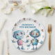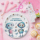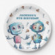 Watercolor Cute Robot Blue White Kids Paper Plates.