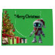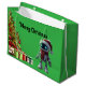 Wrap your gifts in festive fun with this bright and playful gift bag featuring a cute Santa-hat-wearing robot and a merry holiday quote. The charming design adds a modern and whimsical twist to Christmas gifting, making every present look extra special under the tree.