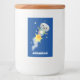 Cute robot flying in space cartoon illustration food label