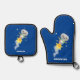 Cute robot flying in space cartoon illustration oven mitt & pot holder set