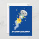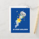 This cute robot is flying in space with rocket power! Drawn in adorable cartoon illustration style.