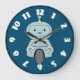 Cute and friendly robot guy. This adorable little robot dude has an antenna on top of his head and a handy wheel at the bottom for moving around. His arms have grabby little clamps for grasping at things and has a typical robotic expressionless face.