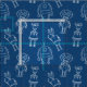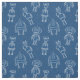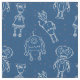 Cute robots on classic blue fabric