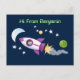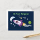 Explore space with this cute design featuring a boy in a rocket ship drawn in fun cartoon illustration style!
