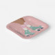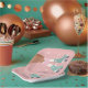 Cute blush pink roller skating birthday party napkins with a retro-inspired illustration of teal blue roller skates on a dark skin girl wearing pink-striped socks and "Let's Roll" in a fun 70's style script.