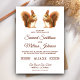 Amaze your guests with this cool wedding invitation featuring cute squirrels facing each other with modern typography against a white background. Simply add your event details on this easy-to-use template to make it a one-of-a-kind invitation. Flip the card over to reveal a brown watercolor texture on the back of the card.