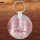 Cute rose blush silver faux glitter monogram key ring
