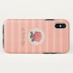 Cute Rose Flower on Coral Pink Striped Case-Mate iPhone Case