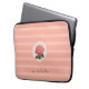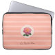 Cute Rose Flower on Coral Pink Striped Laptop Sleeve