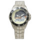 This cute rottweiler puppy is cuddling up to his grey teddy bear toy, he looks like he's enticing someone to play with him, those big pleading puppy rotty eyes certainly show everyone what big softies rottweiler dogs are. I painted wonderful little rottweiler pups portrait in soft pastels. This vintage style wrist watch has the rottweiler dog portrait painting set against a neutral cream coloured background, it has a classic black watch strap that will suit all tastes. I'm sure it will make an original gift for everyone who is owned by a rottweiler or anyone who admires the breed and other dogs of all shapes and sizes. This unique art watch will be perfect to give to someone special, or maybe you just want to treat yourself to this original pet portrait classic wrist watch.