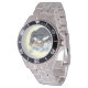 Has heft and feel of expensive stainless steel quartz watches. Good band with safety catch. I removed links, which is easy because engraved arrows show direction to push the linking pins. As always by this seller, the image (a railroad logo) is a perfect reproduction of my emailed image, and is precisely spaced and aligned.